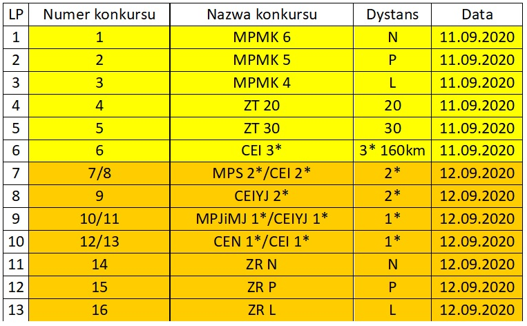 Organizator zawodów w sportowych rajdach konnych na Zamku Kliczków uprzejmie informuje, iż w dniu 11 września 2020 roku (piątek) zawodnicy mają szansę dosiąść dwóch koni w Mistrzostwach Polski Młodych Koni, ponieważ na prośbę sympatycznego zawodnika dystans N wystartuje o godzinie 6:00 a dystans P o godzinie 15:00. Zatem zawodnicy zdążą przesiąść się z jednego konia na innego i wystartować w obydwu konkursach mistrzowskich.